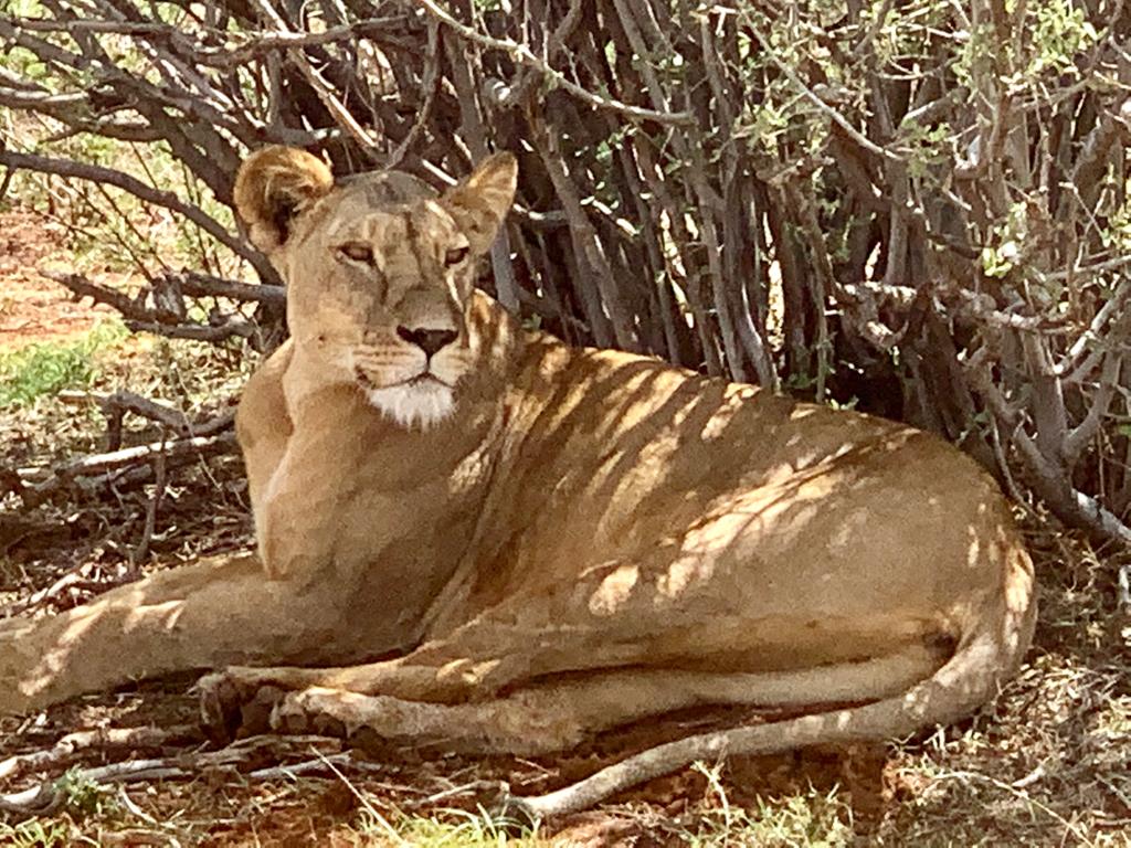 We went to check in the lion cubs. They were hidden in a bush but we saw mom and the three subadults.