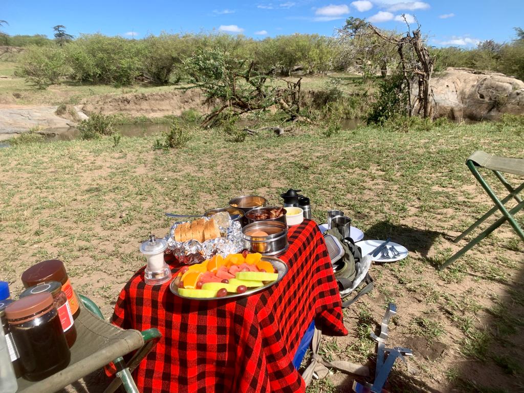 We went to a small river next filled with hippos and one crocodile and ate breakfast out in the bush. This is one of my favorite things to do on safari.