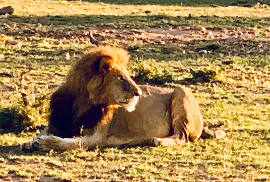 Then off we went to find the male lion from last night. We found him just as he was giving himself a bath. Then he walked within inches of our vehicles off in the bushes to find his resting spot for the day.